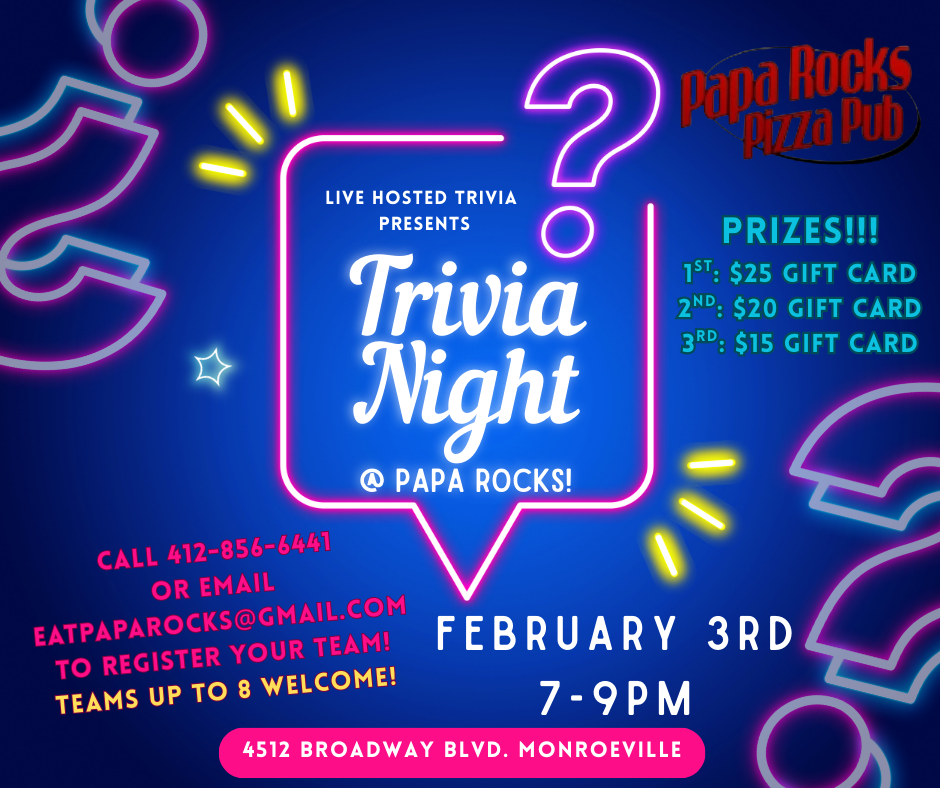 Welcome to Papa Rocks in Monroeville, PA! We are open 7 days a week and offer a variety of daily food and drinks specials that you won't want to miss!